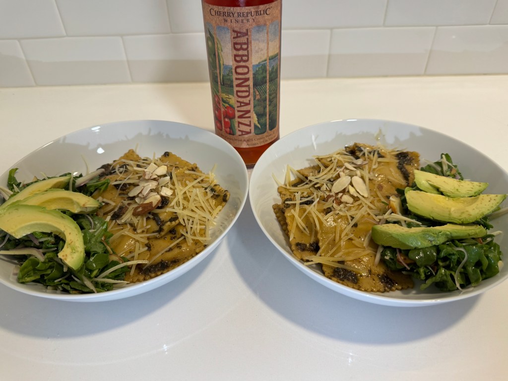 Donna: Well, first and foremost, I must say that this dinner was incredibly easy to prepare. We managed to find all our ingredients at our local grocery store, including premade butternut squash ravioli. This makes this dinner even more enjoyable after a long workweek.